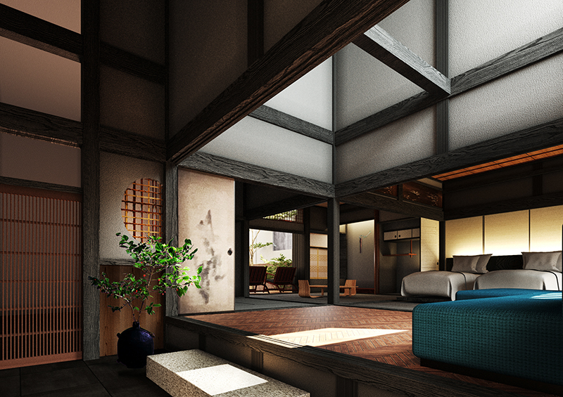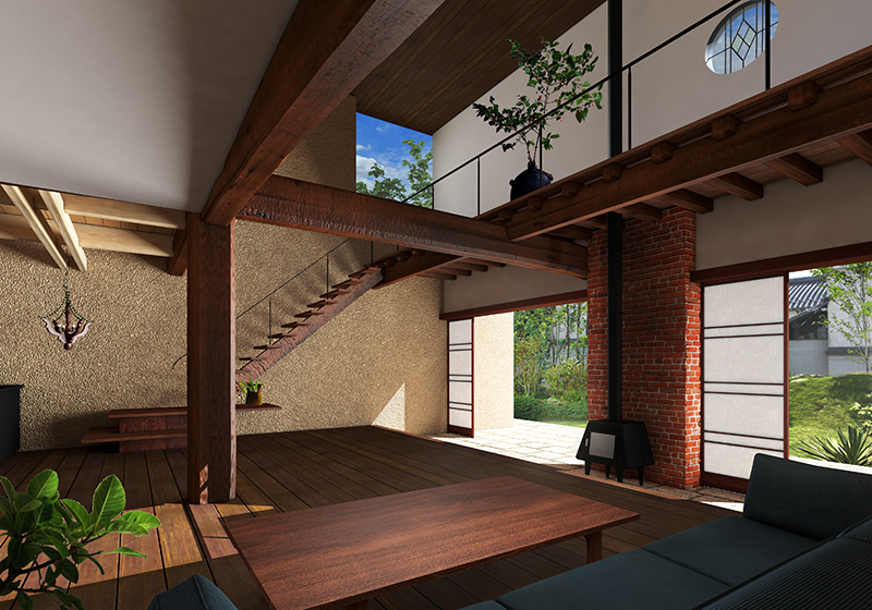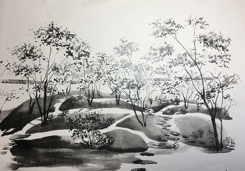 CGパース、手書きスケッチ、墨絵風、など